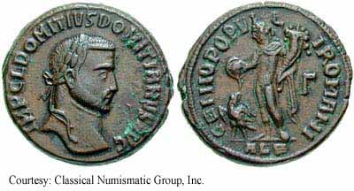RIC 19 Follis Obv: IMPCLVCIVSDOMITIVSDOMITIANVSAVG - Laureate head right.