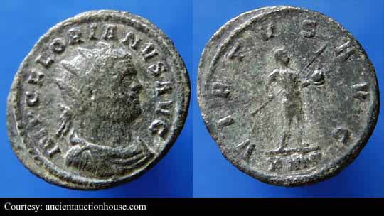 RIC 21, Calicó 4131, C 55 Aureus Obv: VIRTVSFLORIANIAVG - Laureate, cuirassed bust left, holding spear over shoulder and shield. Rev: PERPETVITATEAVG - Providentia standing left, leaning on column, holding globe and cradling scepter. June - August 276 (Ticinum).