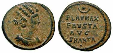 RIC 69 (Antioch) AE3 Obv: FLAVMAXFAVSTAAVG - Wavy hairdo bust right with pearl necklace, draped.