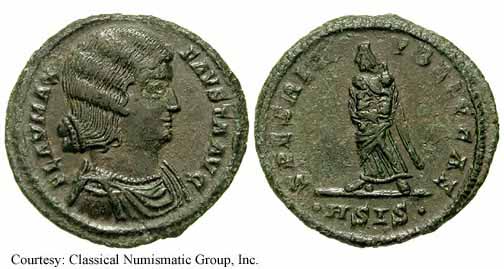 - Salus standing left, holding a baby in each arm. 325-326 (Nicomedia). $9 6/1/03.