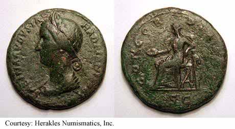 RIC 410 (Hadrian), S 3925, C 81 Denarius Obv: SABINAAVGVSTAHADRIANIAVGPP - Diademed, draped bust right. Rev: VESTA - Vesta seated left, holding Palladium and scepter. 133 (Rome).